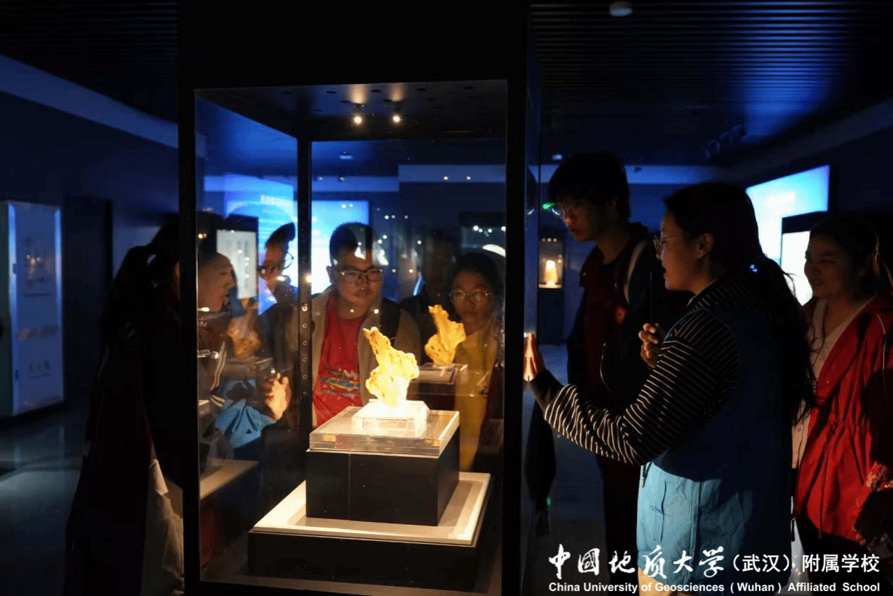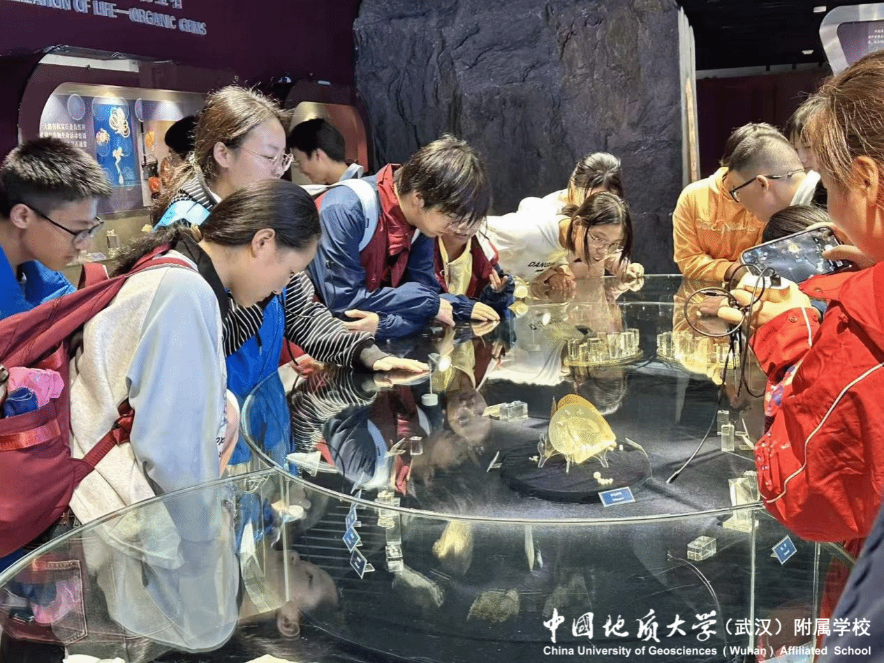 研学活动的最后一站是中国地质大学博物馆。在地大博物馆专业老师的引导下,乌龙泉中学师生沉浸式参观了馆内的地质标本展区、文物展区。从形态各异的矿物晶体到记录地球变迁的古生物化石,从展现地质研究成果的科研展品到承载学校历史的珍贵文物,每一件展品都让师生们惊叹不已。大家不时驻足观察、提问交流,在聆听讲解的过程中不仅丰富了地质文化知识,更深刻感受到中国地质大学深厚的学术底蕴与地大附校“依托高校资源、特色育人”的办学优势。
