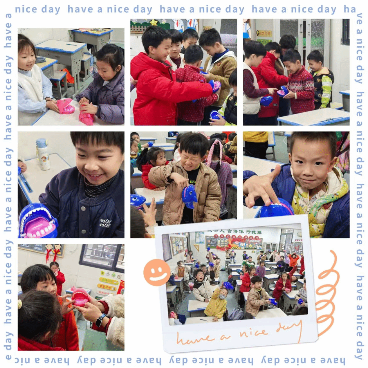 为了让知识真正“动”起来,活动还设置了趣味小游戏和有奖问答环节。孩子们在轻松愉快的氛围中巩固了所学内容,争当“护牙小卫士”。每一位小朋友还收到了一份特别的礼物——鲨鱼牙齿咬手指玩具。课后孩子们捧着礼物,聚集在一起,玩的不亦乐乎。