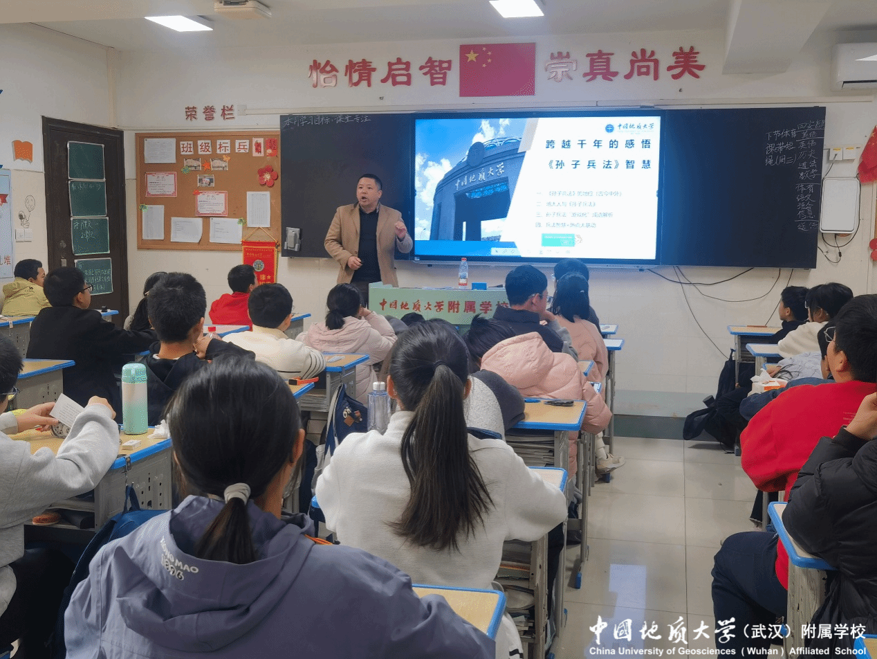 (通讯员:刘媛)为进一步拓展学生视野,深化家校协同育人机制,2025年12月5日,中国地质大学武汉(附属)学校七(3)班开展了形式新颖、内容生动的“家长进课堂“活动。本次活动特邀严凯文同学的父亲严嘉老师走进课堂,为同学们带来了一堂别开生面的主题分享课——《跨越千年的感悟 <孙子兵法>智慧》。