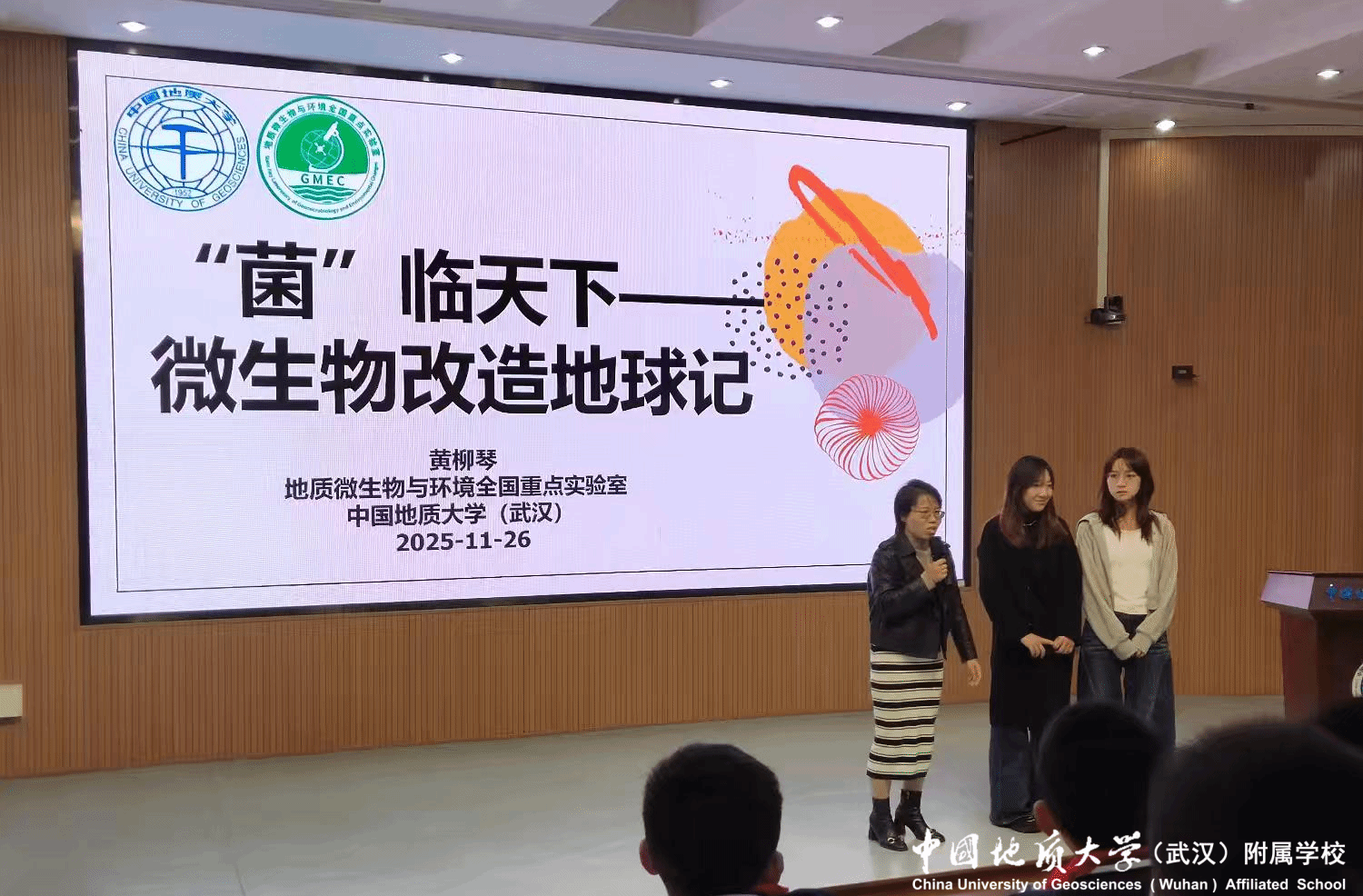 (通讯员:吕霞)当戴着帝王冠冕的微生物形象出现在PPT上时,六(1)、六(2)班的孩子们的头脑里炸开了好奇的“小问号”。11月26日下午,中国地质大学(武汉)地质微生物与环境全国重点实验室的黄柳琴教授带来的《“菌”临天下——微生物改造地球记》科普课,把35亿年的地球史,变成了一场微观世界的“创世传奇”。