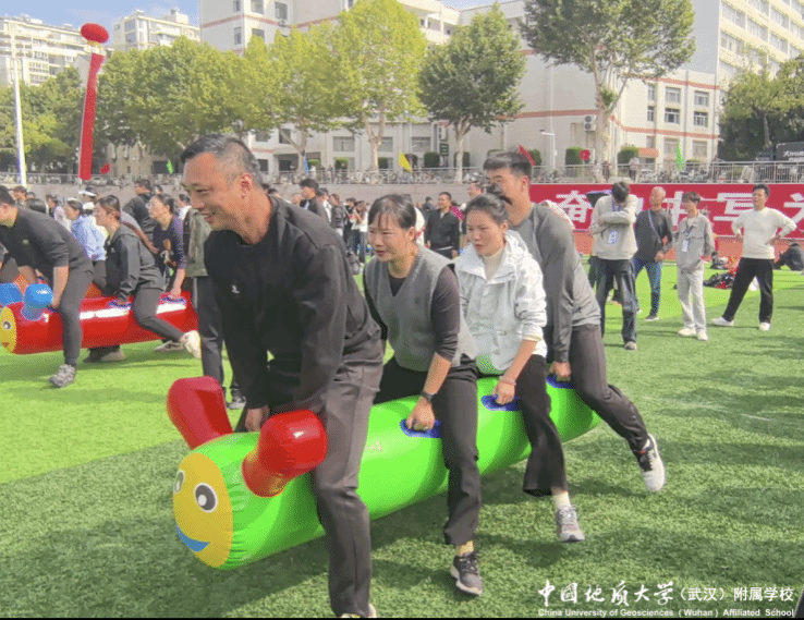 赛场上,附校教师斗志昂扬、全力以赴。在趣味项目“协力向前冲”、“欢乐毛毛虫”、“无敌风火轮”、“一圈到底”、“定点射门”中,参加的老师团结协作,默契满分,均取得优异成绩。
