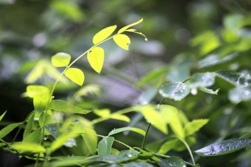 雨是最寻常的,一下就是三两天。可别恼。看,像牛毛,像花针,像细丝,密密地斜织着,人家屋顶上全笼着一层薄烟。树叶儿却绿得发亮,小草儿也青得逼你的眼。傍晚时候,上灯了,一点点黄晕的光,烘托出一片安静而和平的夜。在乡下,小路上,石桥边,有撑起伞慢慢走着的人,地里还有工作的农民,披着蓑戴着笠。他们的房屋,稀稀疏疏的在雨里静默着。