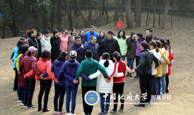 在分组进行拓展游戏比赛中,最为紧张激烈的是“珠行万里”,队员们拿着小滚巢一个接一个,不能间断不能对错位不能大幅度倾斜……小组内由刚开始的慌乱,跑动中你踩到了我的脚我撞到你的身体……到后来每组配合有序,就算不小心滚球落在了地上,大家也是拿球不埋怨依然有序,加油鼓劲直到滚球“安全”落在滚杯中,欢呼雀跃抱紧取暖,此刻为了团体而战的精神互相感染着。难度最大的是“神笔马良”,这支神笔,不仅大而且显得笨重,队员们在尝试中找窍门找感觉找默契,平时觉得不能再简单的几个字,何况是我们朗朗上口的校训“怡情启智,崇真尚美”中的四个字“怡情启智”,大家写得相当“艰难”,三组最后均完成,不容易!接力传球”柔和平稳,成绩悬殊最小,最终绿队三轮比赛综合得分遥遥领先,获得优胜!上午拓展活动整整两个半小时,活动虽结束,中午吃饭的时候老师们还意犹未尽,津津乐道交流讨论着。
