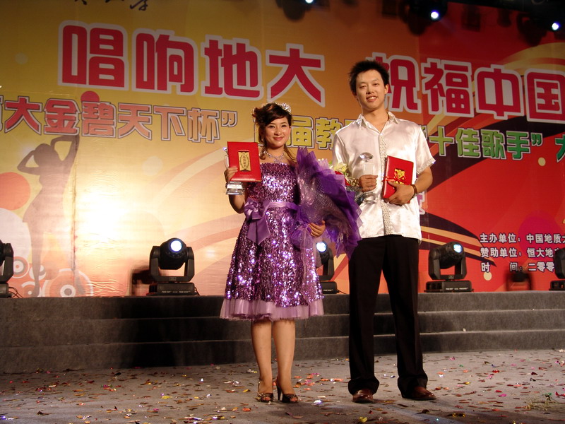中国地质大学首届教职工“十佳歌手”大奖赛,经过两轮预赛的激烈竞争,我校许梅、王劲松老师成功跻身前20名。2009年6月16日晚7:30在东区灯光球场举办的总决赛上,许梅、王劲松老师发挥出色,分别取得总分第一名、第五名的好成绩。