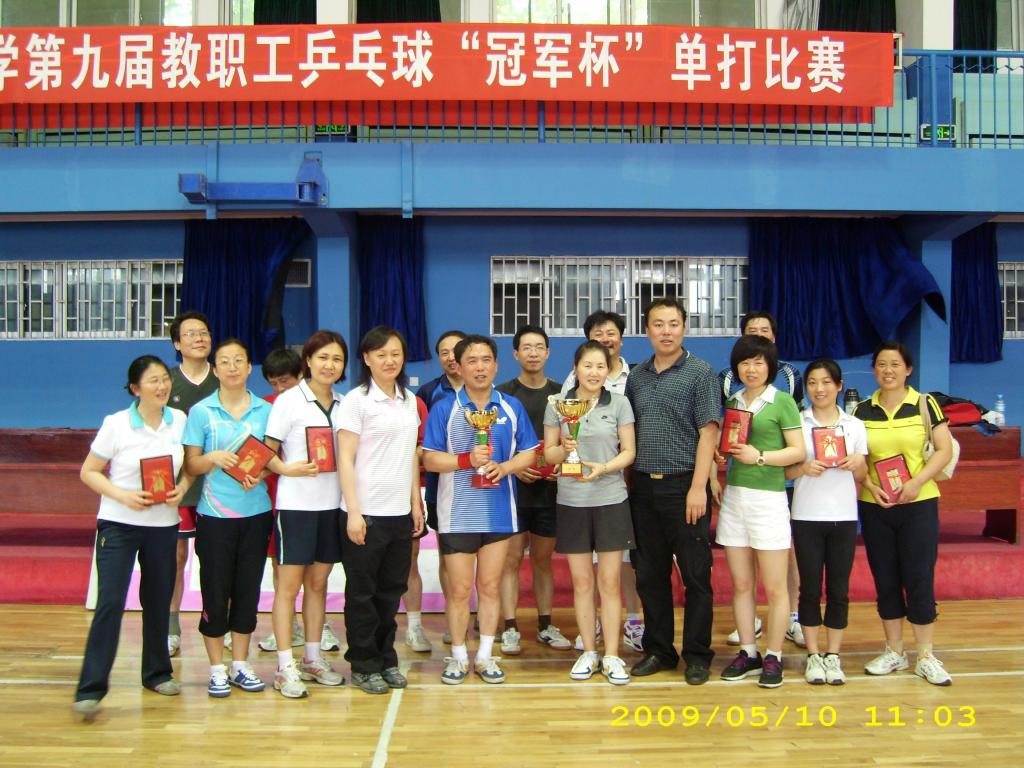 2009年5月9—10日,中国地质大学第九届教职工乒乓球“冠军杯”单打比赛在西区体育馆开赛,附校乒乓球代表队的杨宝生和彭丹波两位队员经过两天的比赛,双双闯入前八强,最终分获男子乒乓球单打比赛第一名、第七名。