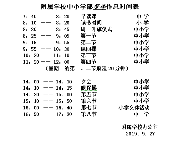 国庆节后学校执行冬季作息时间表,请家长们注意时间调整安排