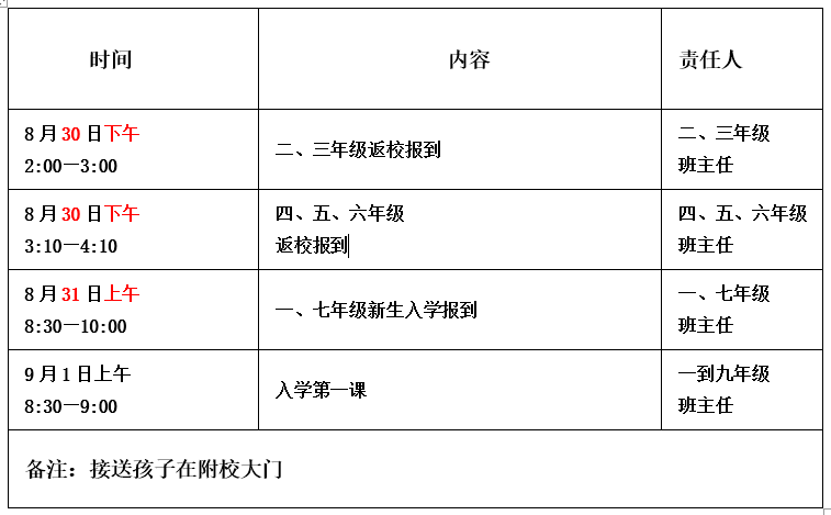 2、报到当天一年级新生在家长带领下进入校园,找到对应班级。二至七年级学生自己进入校园找到所在班级。