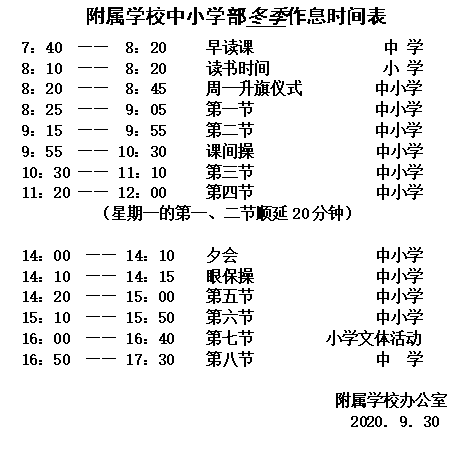 国庆节后学校执行冬季作息时间表,请家长们注意时间调整安排