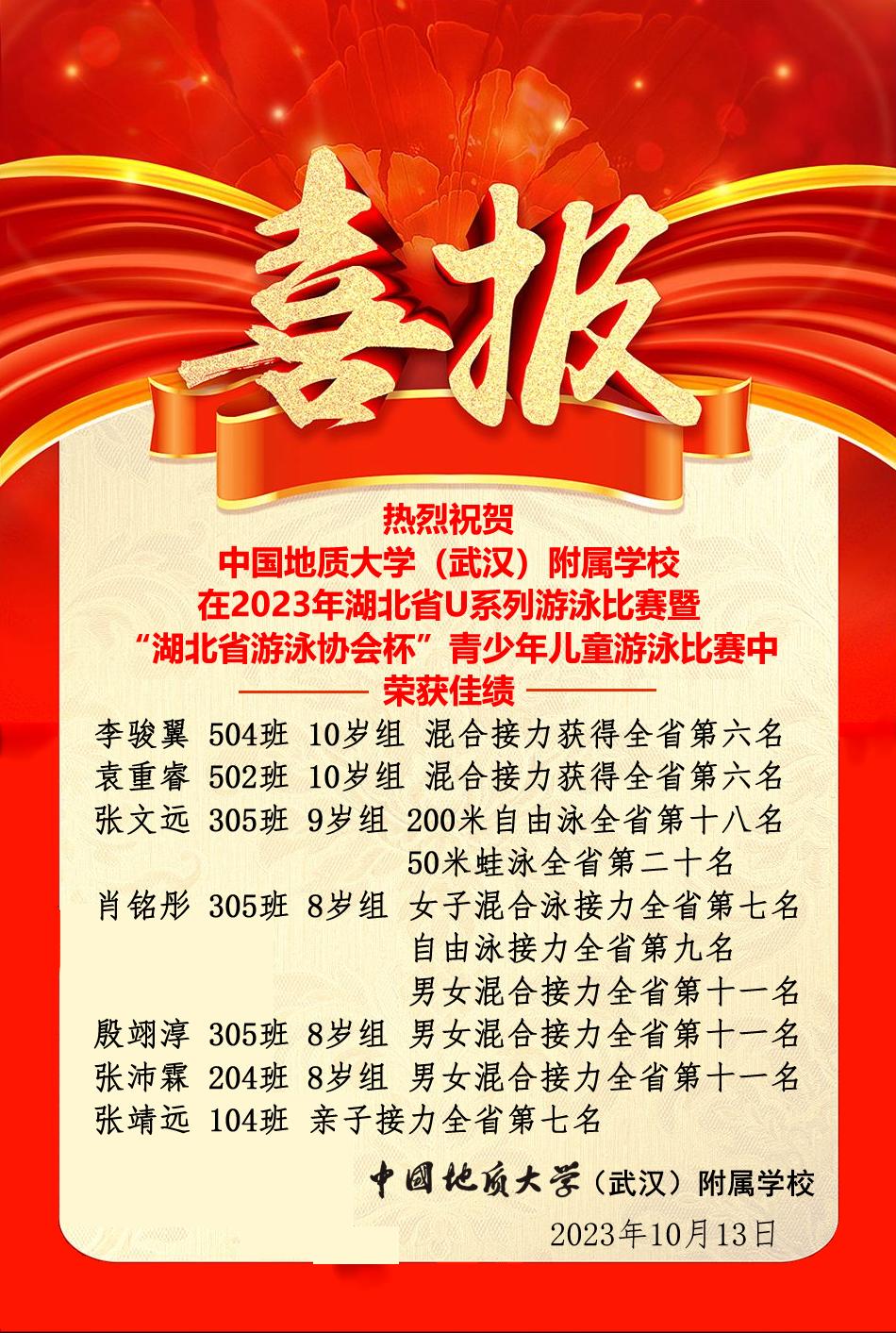 喜报(“湖北省游泳协会杯”青少年儿童游泳比赛)
