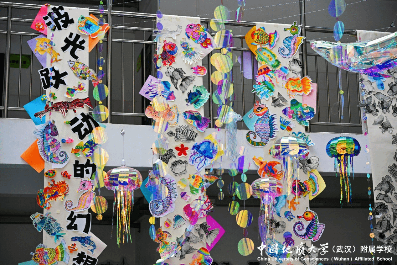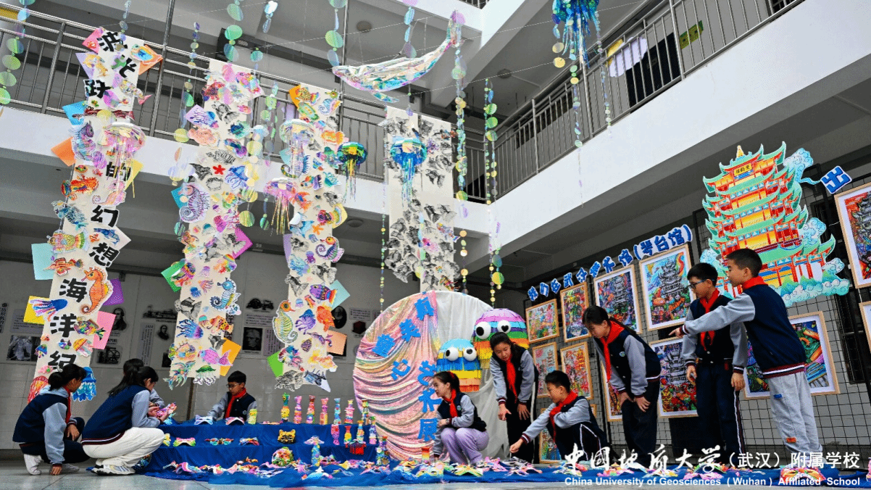 9月,一场名为“海洋纪”的大型集体创作将艺术展推向高潮。全校1350余名学生共同参与,将998件独立创作的艺术元件拼合成一幅长达25米、高4米的巨型视觉艺术长卷,实现了全校班级的100%覆盖。此举不仅是一次艺术展示,更是一次成功的“童心共创”实践,强化了学生的集体归属感与协作精神。